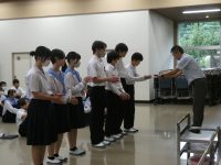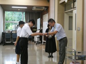 表彰では、聖徳書道展で1年1名、2年1名が入選しました。また、先日行われた村民体育大会・卓球の部で、シングルス、ダブルスそれぞれ男女で表彰がありました。おめでとうございます!