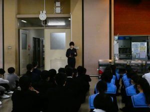 全校朝礼2026年4月23日 4月20日(月)、全校朝礼を行いました。 今回は岩崎先生の講話でした。学生時代のお話から勉強を頑張ったお話と何か頑張ることを見つけてほしいとメッセージをいただきました。周りにいる仲間も大切にしてほしいと話してくださりましたね。 岩崎先生のお話 何か頑張れることを見つけて